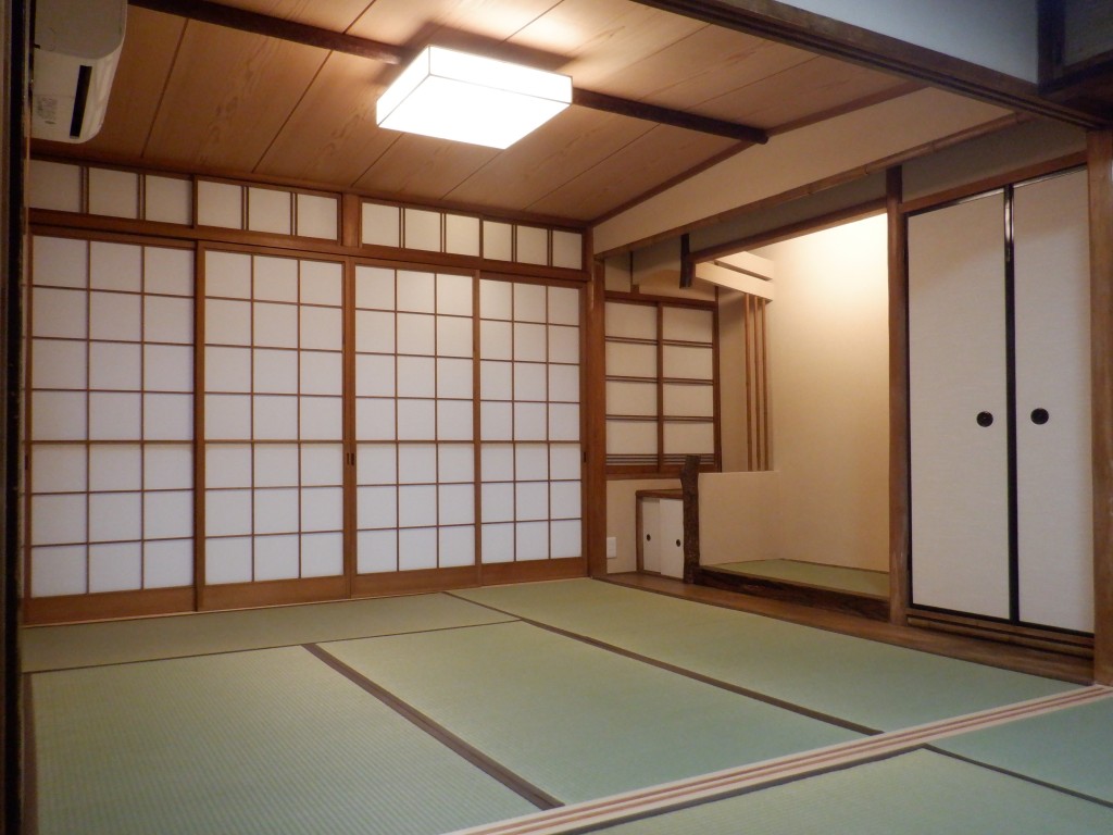 今回のリフォームでは、1から解体をし、構造からやり直しました。床材、壁材、天井材は和風仕上げに。無垢材をふんだんに使用しました。写真から伝わるように木の温かみを感じながら変化する木材を楽しみ、これから生活をしてほしいと願っております。